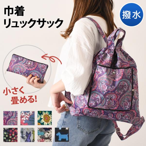 リュックサック レディース 軽量 おしゃれ 折り畳み A4 撥水 エコバッグ トートバッグ 巾着 旅行 大容量 総柄 トラベル マザーズ ポイント消化