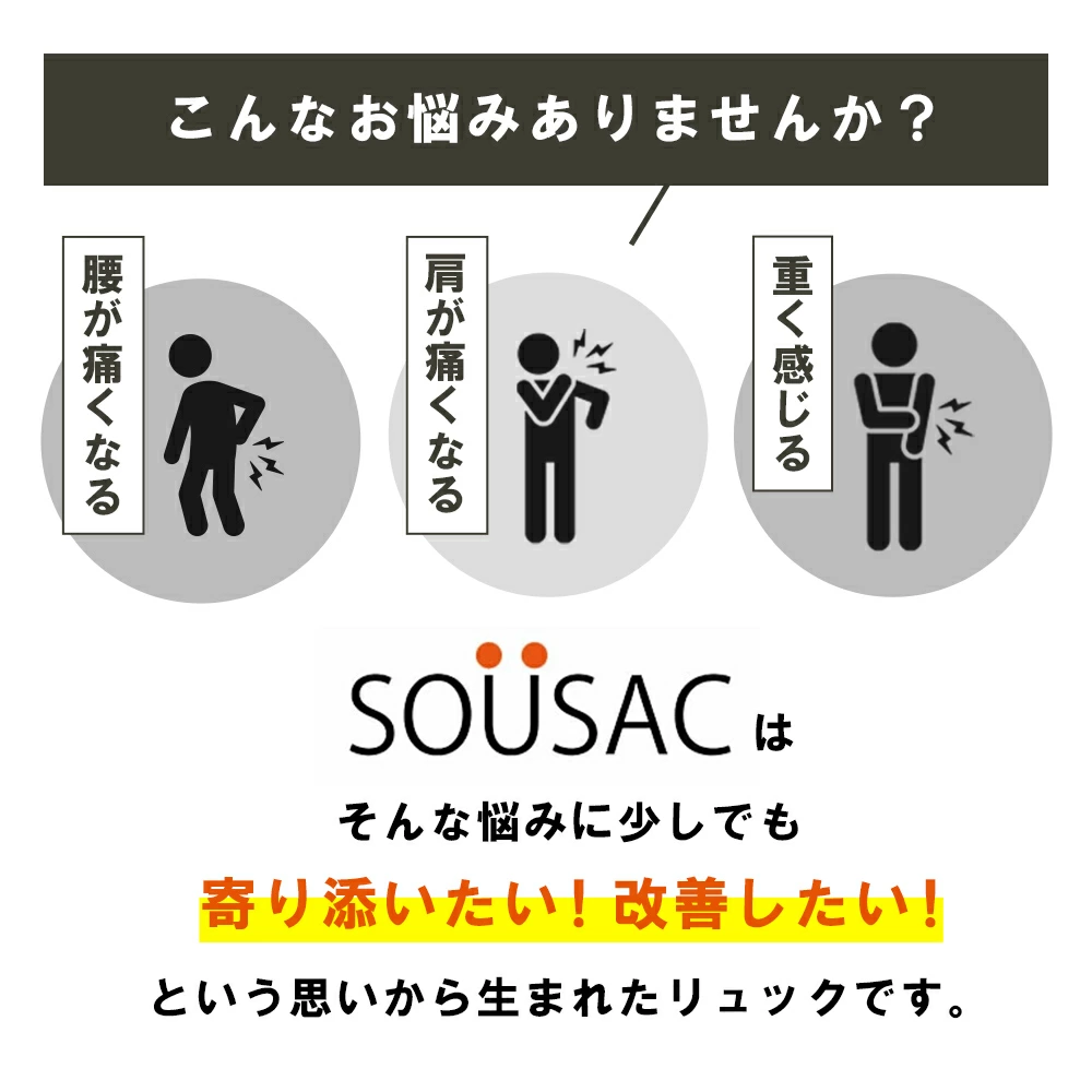 SOUSAC ソウサック 人間工学リュック バック リュックサック 腰 肩 負担軽減 撥水 通勤 通学 ビジネス レディース セール対象