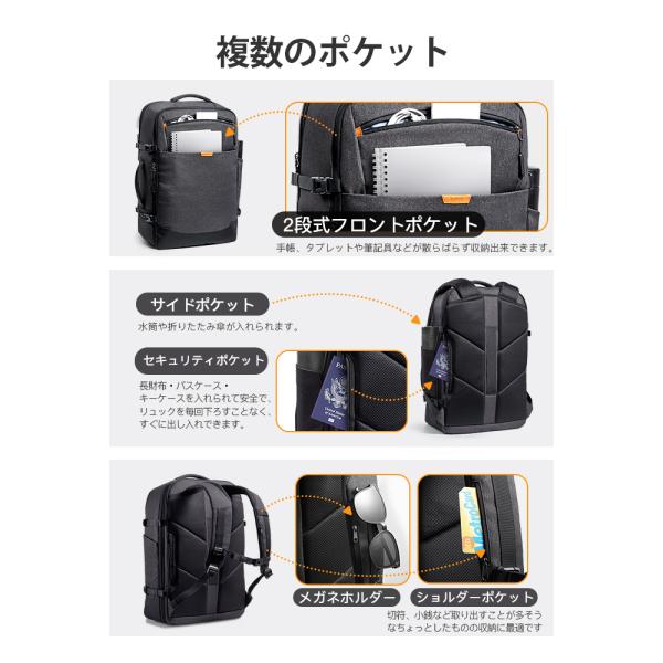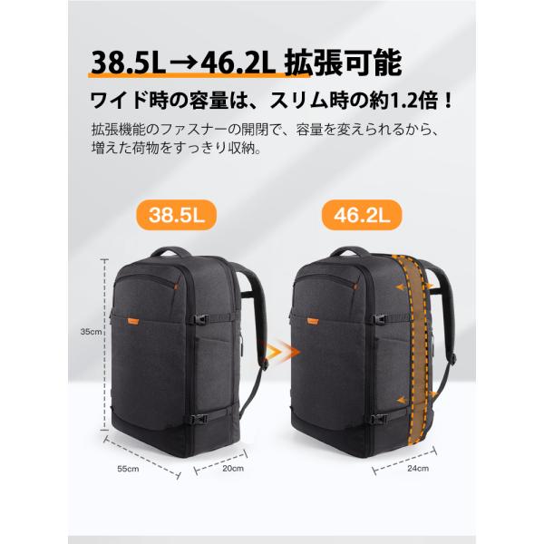 [拡張可] リュック サック 大容量 トラベル バックパック 38.5-46.2L 機内持ち込み手荷物 ハンドラゲッジ 撥水加工 トロリーストラップ 出張 通勤 旅行 男女兼用