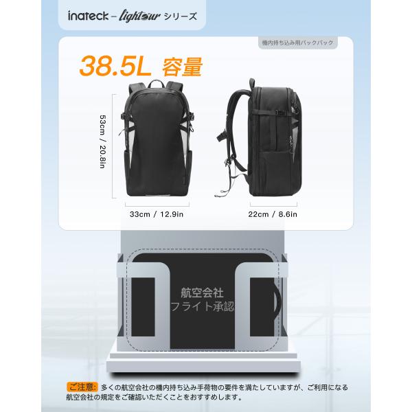 [在庫一掃]Inateck 38.5L バックパック リュック サック TSA対応 キャリーオンバックパック 海外旅行 出張 通勤 機内持ち込み可 手荷物 17インチPC 撥水 超軽量