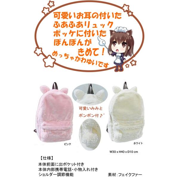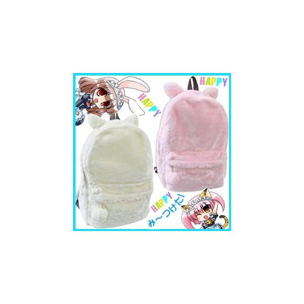 A574送料無料(可愛いお耳のふかもこポンポンリュックサック)デイバッグ猫うさ耳みみウサ耳小中学生高校生通勤通学ねこcatキャットキッズジュニアレディス