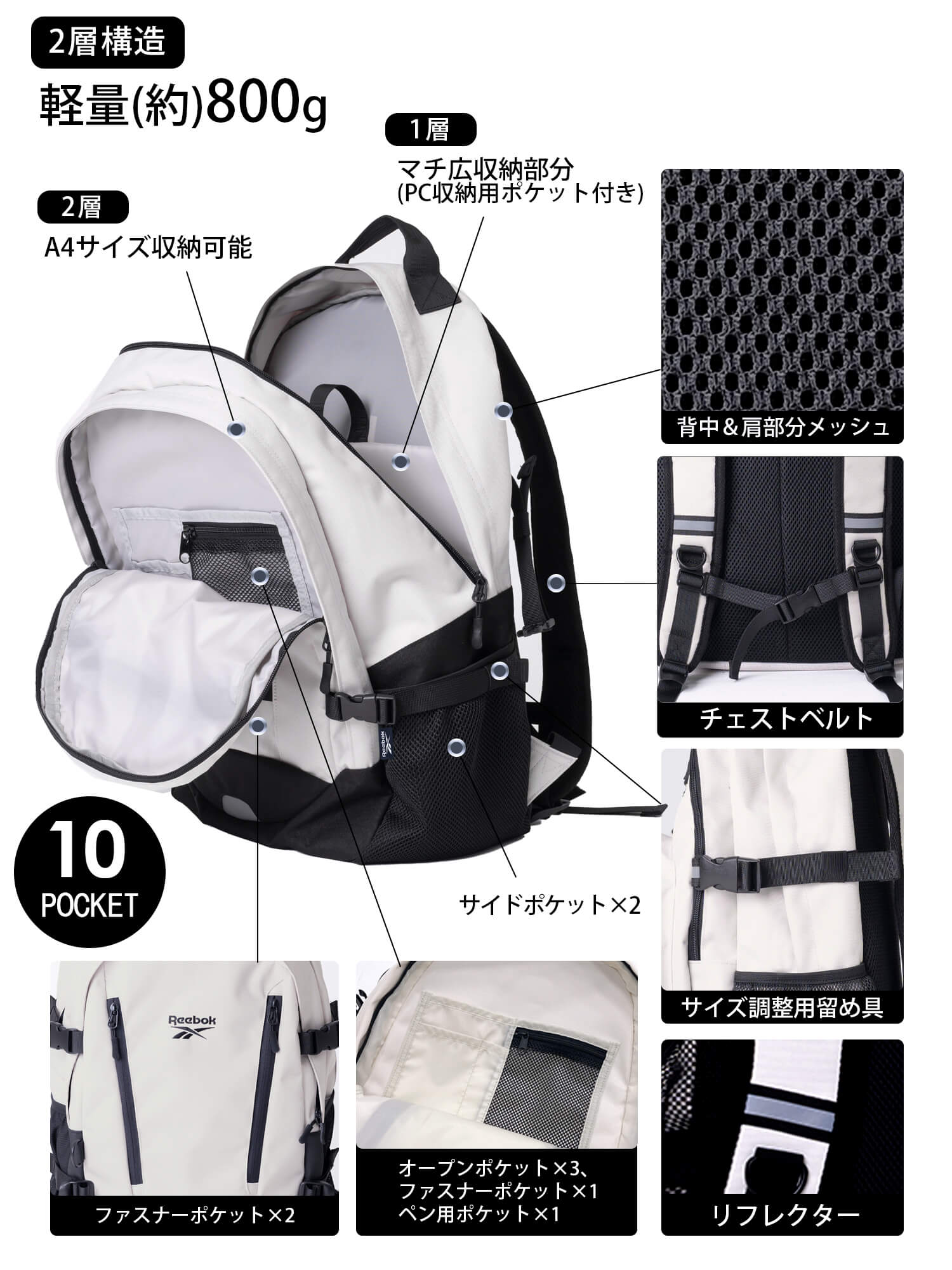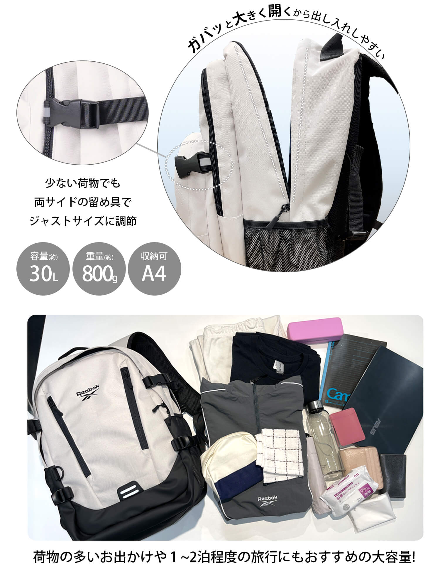 P5倍特価 Reebok リーボック リュック メンズ レディース リュックサック 通学 大容量 30L 二層式 通勤 A4 PC収納 旅行 ノベルティ付