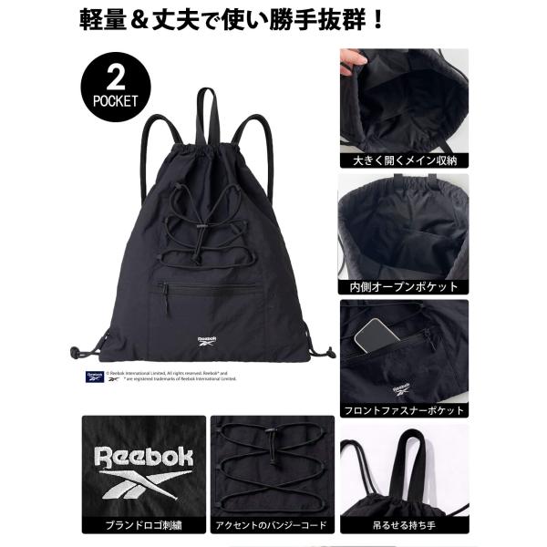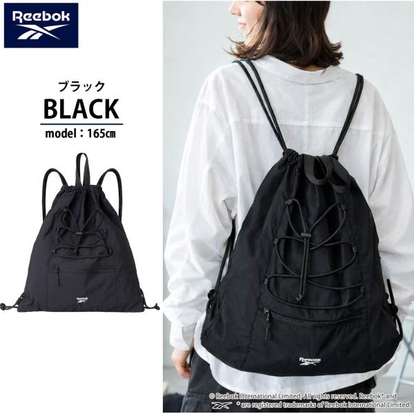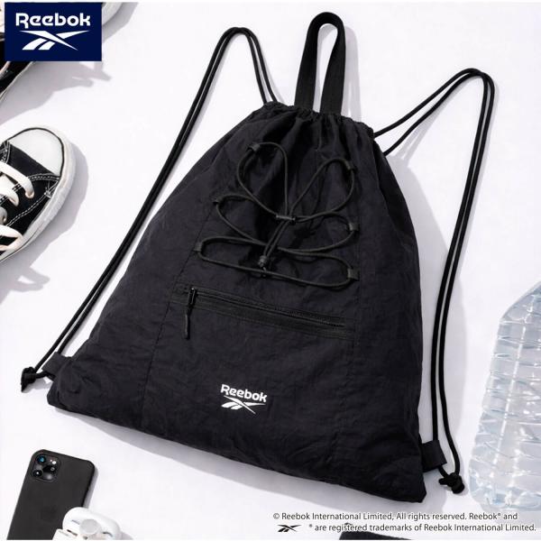 今だけP10倍 Reebok リーボック ナップサック リュック 軽量 メンズ レディース 学生 部活 ジム 旅行 ブラック 黒 ノベルティ付