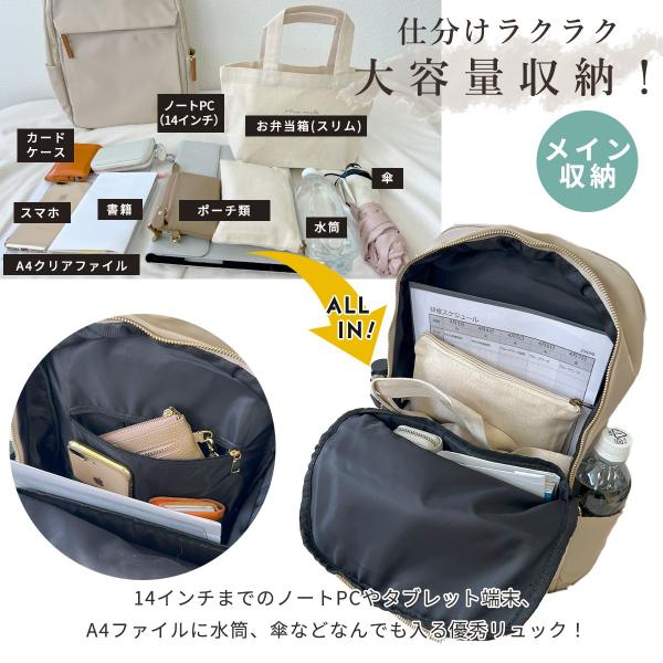 リュック レディース 通勤 きれい め 軽い パソコン A4 ナイロン 撥水 防水 大きめ 50代 軽量 大人 旅行 大容量 おしゃれ トラベル 学生 黒 PC 14インチ