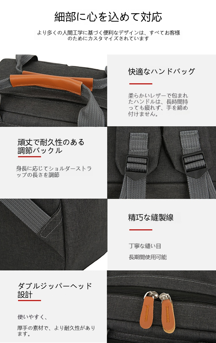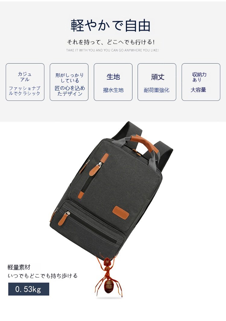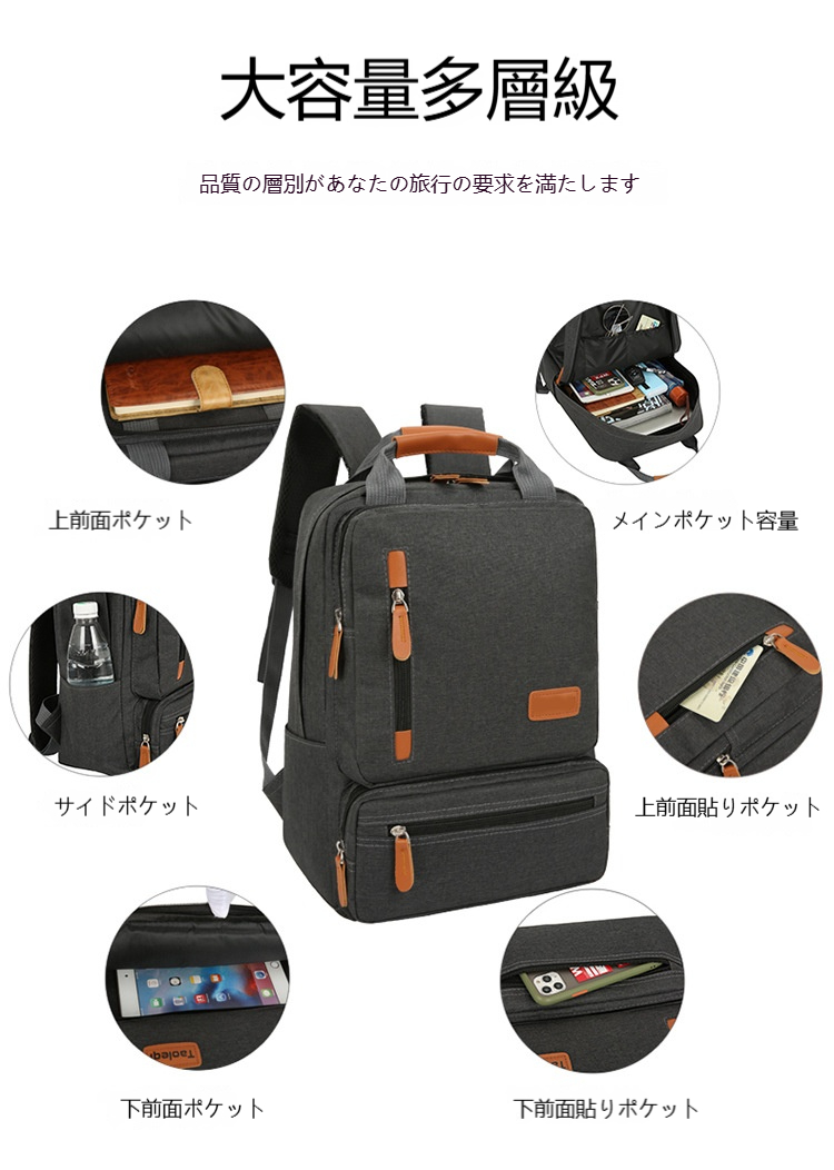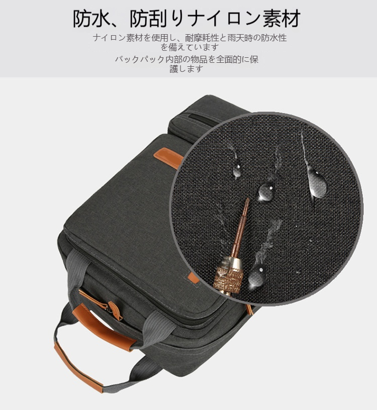 多層収納リュック 防水 軽量ナイロン コンパクト 多ポケット 通勤 旅行 書包型 男女兼用 小物バッグ付き ファスナー式 手提げ兼用バッグ