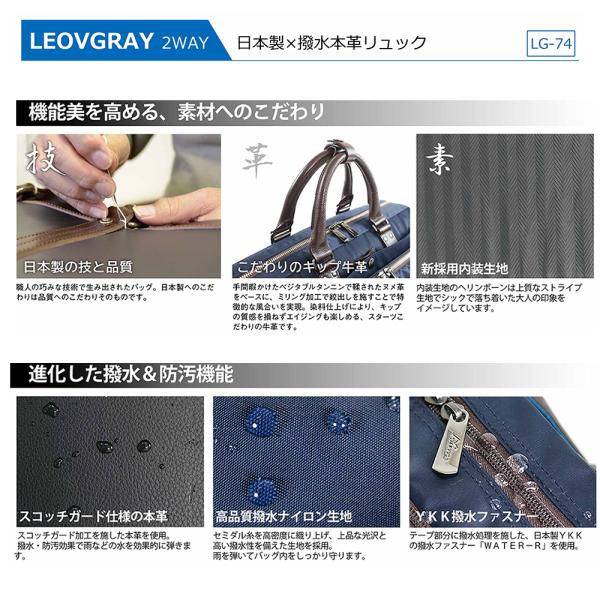防水仕様 ビジネスバッグ LEOVGRAY(レオヴィグレイ)メイドインジャパン 日本製×本革 2WAY リュック スコッチガード【LG-74】