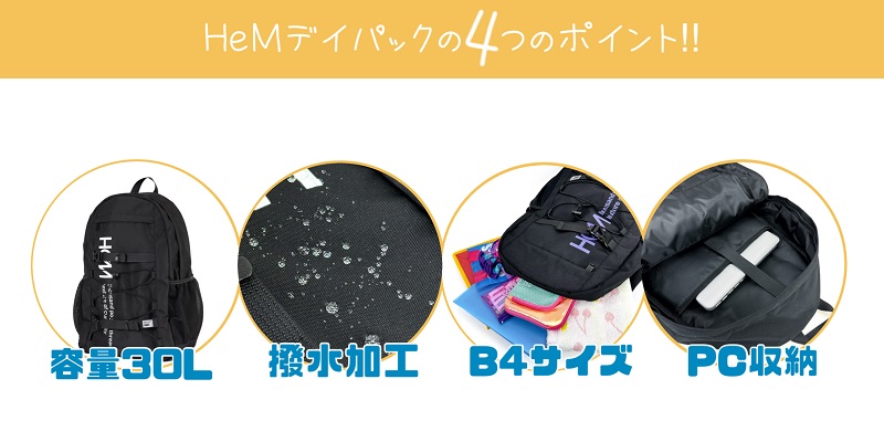 ヘム リュック レディース メンズ HeM ハイク 通学 学校 スクールリュック 30L B4 撥水 PC 男女兼用 ジュニア 学生 中学生 高校生 部活 ブランド 39-721