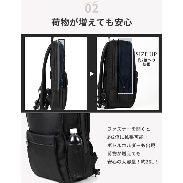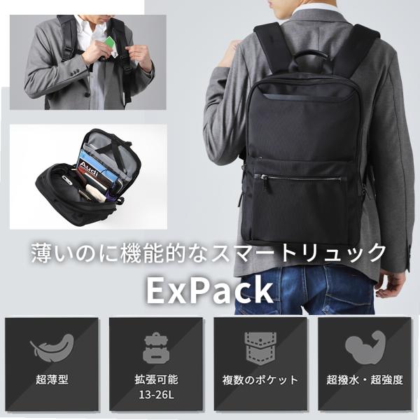 ビジネスリュック 薄型 拡張可能 メンズ 防水 大容量 ビジネス バッグ シンプル リュックサック リュック 黒 通学 通勤 30代 40代 50代