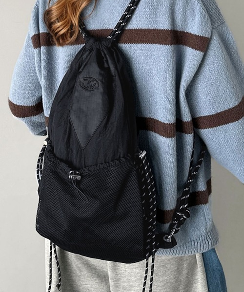 デイバック リュック 「JaVaジャバコラボ」軽量×大容量。メッシュ使いドローコード ナップサック レディース