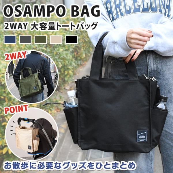 トートバッグ メンズ レディース ショルダー 大きめ ファスナー 軽量 斜めがけ 手提げ OSAMPO BAG 散歩 マザーズ ベビーカー