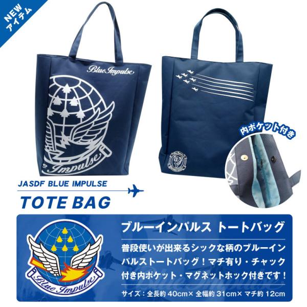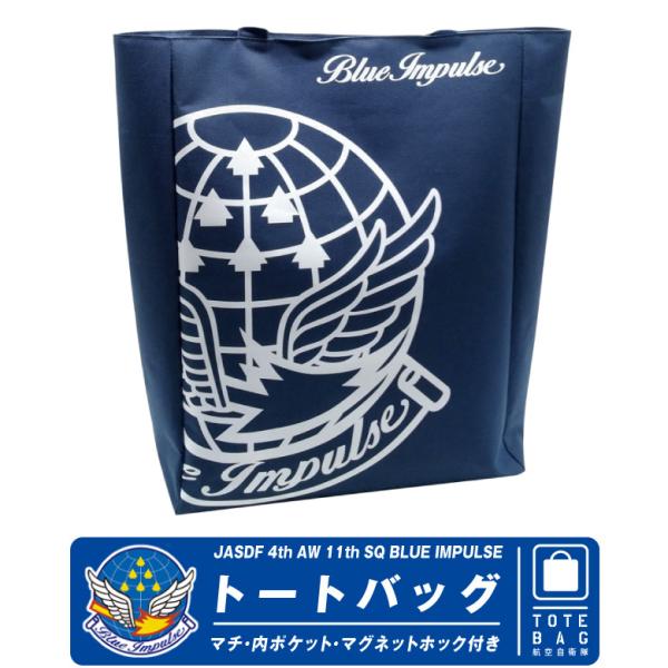 航空自衛隊 ブルーインパルス トートバッグ マチ 有り マグネットフック 付き ファスナー付き 内ポケット 大容量 エコバッグ グッズ アイテム コレクション