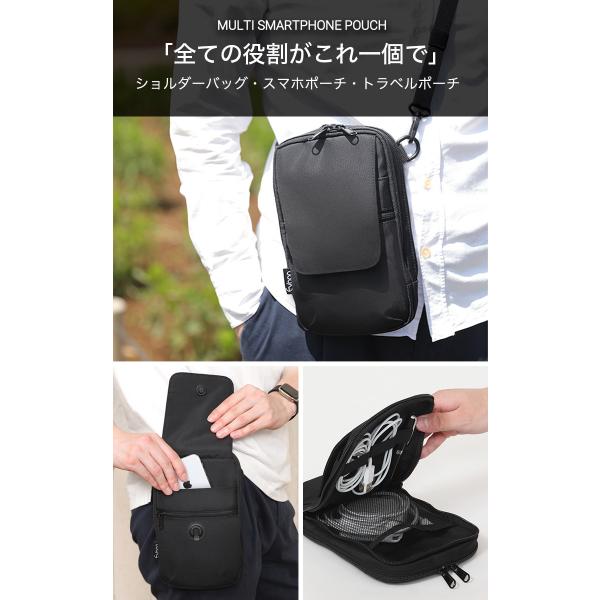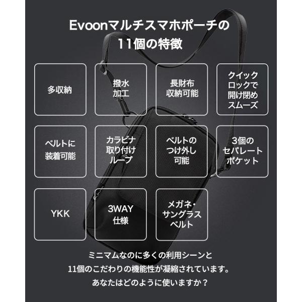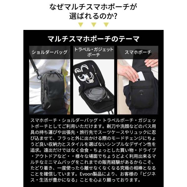 公式 Evoon マルチスマホポーチ ショルダーバッグ 小さめ 小物 メンズ 男性 3way 多機能 多収納 多ポケット 軽量 撥水 肩掛け 斜めがけ バック ガジェットポーチ
