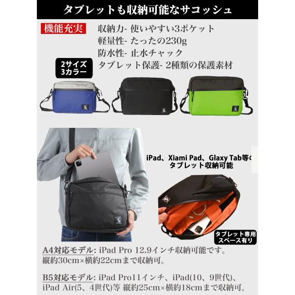 Shoebill サコッシュ ショルダーバッグ メンズ 軽量 撥水 A4 B5対応 登山 アウトドア 斜めがけバッグ
