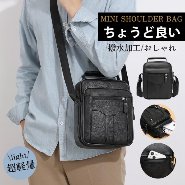 ショルダーバッグ メンズ 本革 小さめ ボディバッグ ミニ 軽量 手提げ スマホショルダー 斜め掛け 軽い スマホポーチ 無地 肩掛け 撥水加工