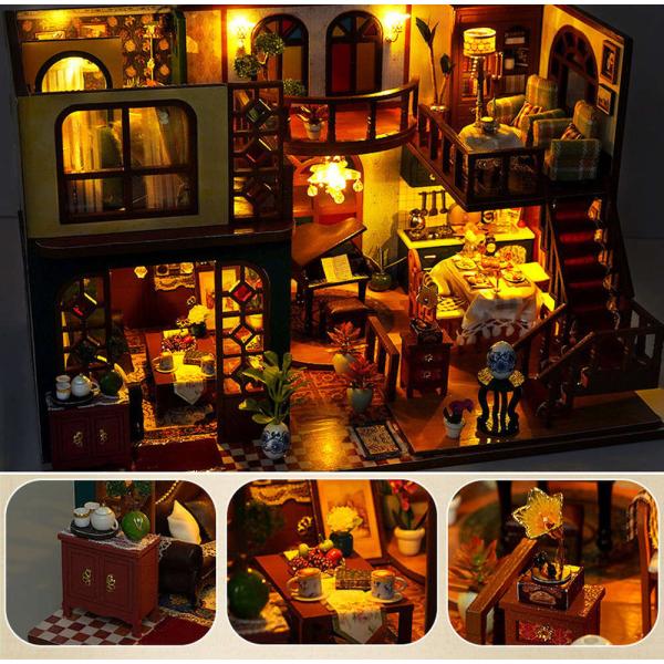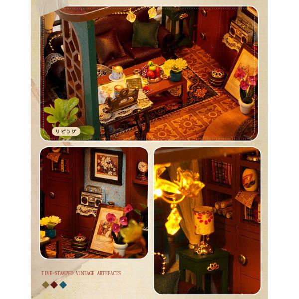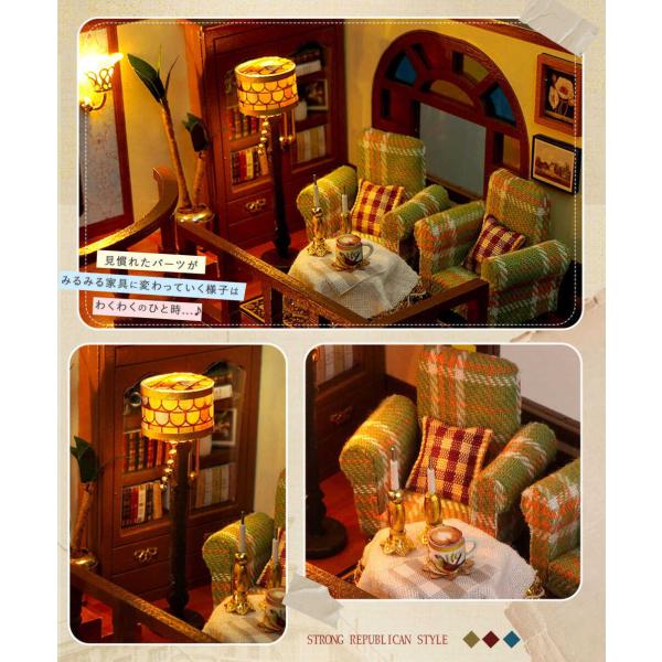 ドールハウス ミニチュア 手作りキット セット 英語説明書 大正 アンティーク レトロ ステンドグラス ピアノ ランプ|LEDライト+アクリルケース