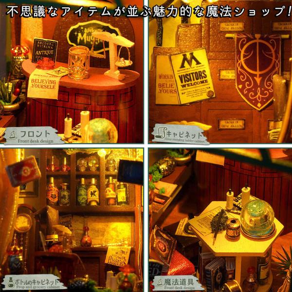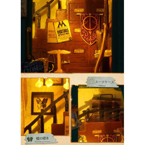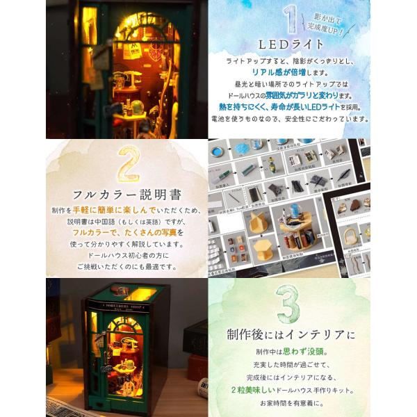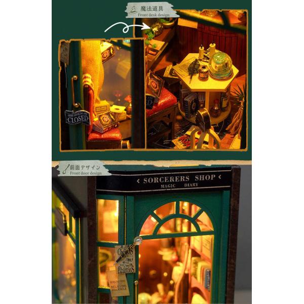 ドールハウス ミニチュア 手作りキット セット 英語説明書 本型 グリーン マジック ショップ LEDライト ペーパークラフト ブックエンド 本の中の街 ベーカ
