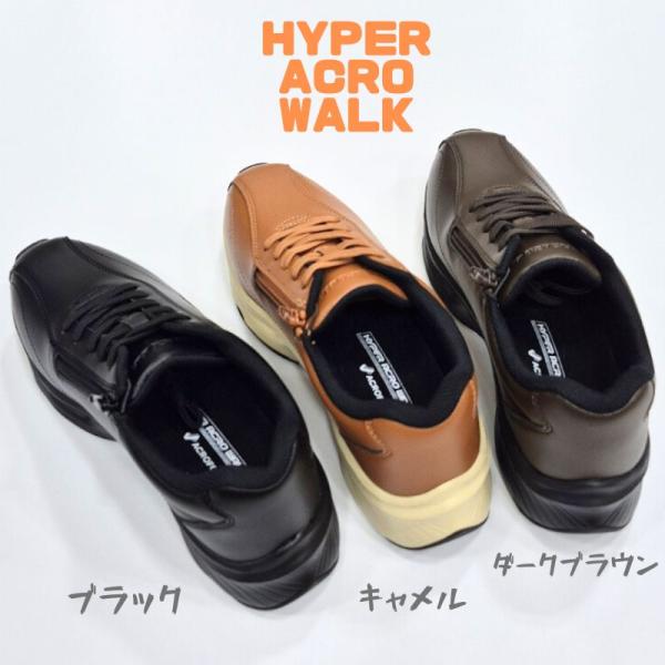 アキレス ハイパーアクロウォーク HAW0010 ACHILLES HYPER ACRO WALK ファスナー付き ウィズ3E 合成皮革 メンズ ウォーキング ブラック キャメル ダークブラウン