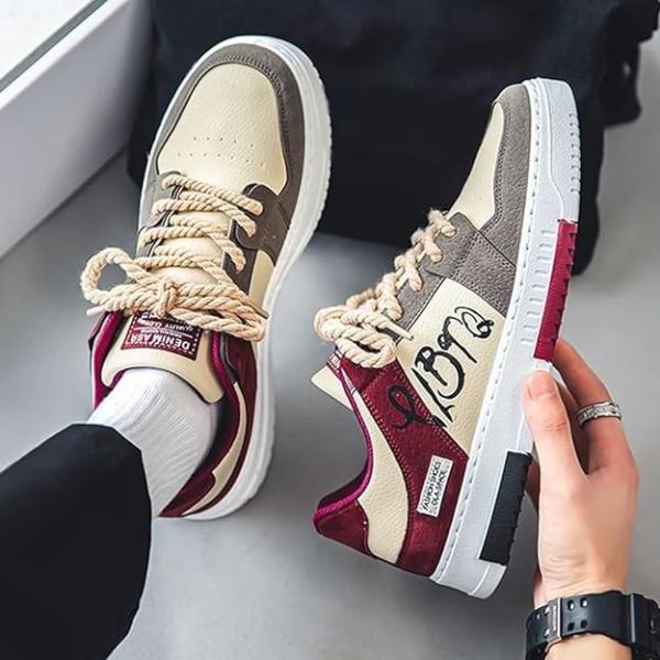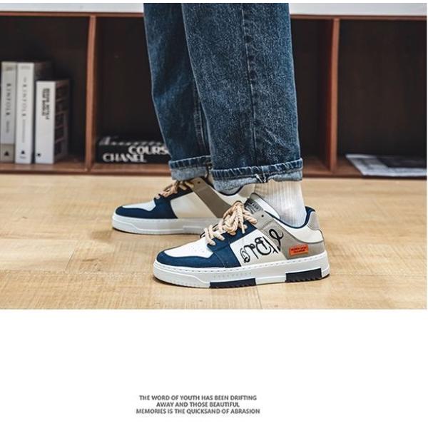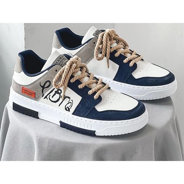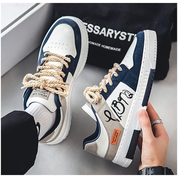 ハイカット スニーカー メンズ ミドルカット ステッチ スエード調 ミックスカラー シューズ バッシュ ブラック ネイビー レッド 通学 ダンス 韓流