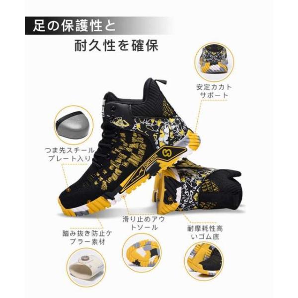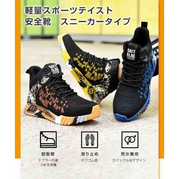 安全靴 スニーカー ハイカット 秋冬 軽量スポーツテイスト メンズ 作業靴 つま先保護 耐衝撃 ケブラー内蔵 滑り止め タフゴム底 厚底