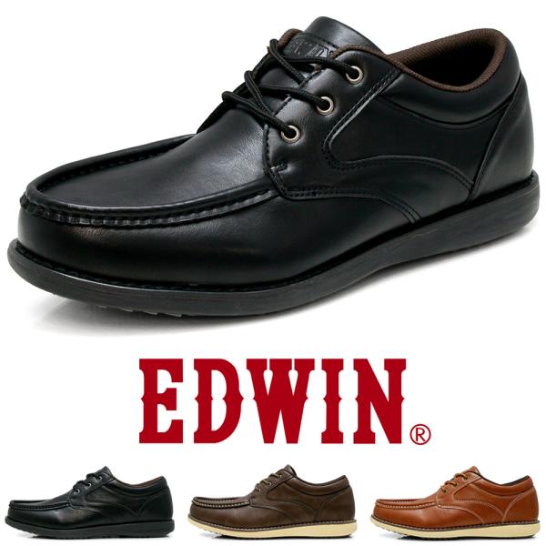 靴 メンズ カジュアルシューズ 防水 軽量 3E 幅広 ビジネスシューズ 革靴 スニーカー Uチップ モックトゥ 紐靴 EDM463 EDWIN エドウィン 正規販売店