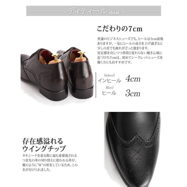 7cmアップ シークレットシューズ レースアップ Cloud9 クラウド9 メンズ 紳士靴 ウイングチップ 外羽根 ブラック 黒 ダークブラウン [送料無料]