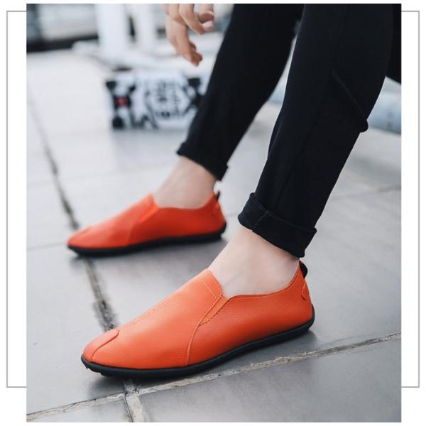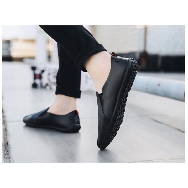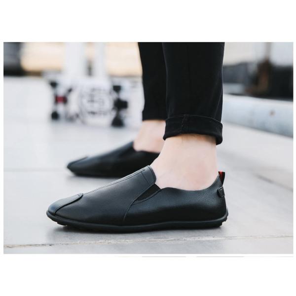 メンズ スリッポン PU レザー シューズ ドライビングシューズ 無地 軽量 カジュアル プライベート スポーツ スニーカー 運動靴 茶 白 黒 靴 夏