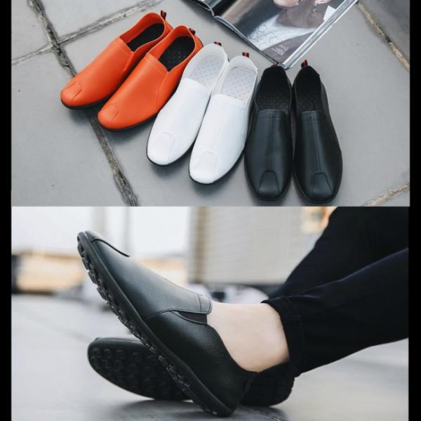 メンズ スリッポン PU レザー シューズ ドライビングシューズ 無地 軽量 カジュアル スポーツ スニーカー 運動靴 茶 白 黒 靴 秋