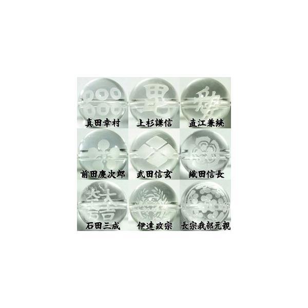 戦国武将 家紋 印 手彫り水晶 12mm 天然石丸ビーズ 2玉セット