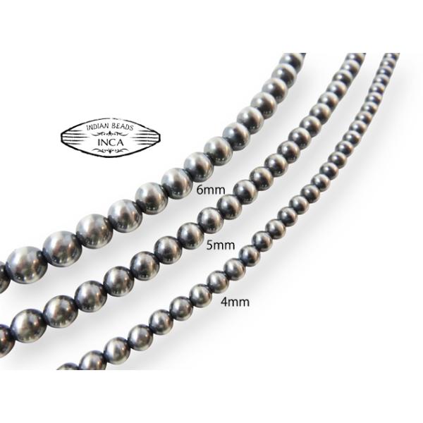 ナバホパールビーズ 6mm玉 シルバー925 インディアンジュエリー ビーズ ハンドメイド 4粒入り, INCA