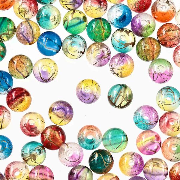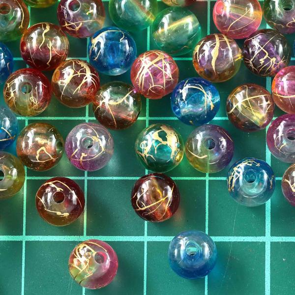 ビーズ 8mm 丸 有色 透明 グラデーション 金線模様 500個 ミックス 手芸 パーツ BD3032