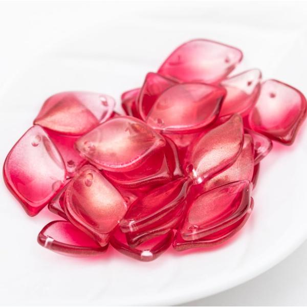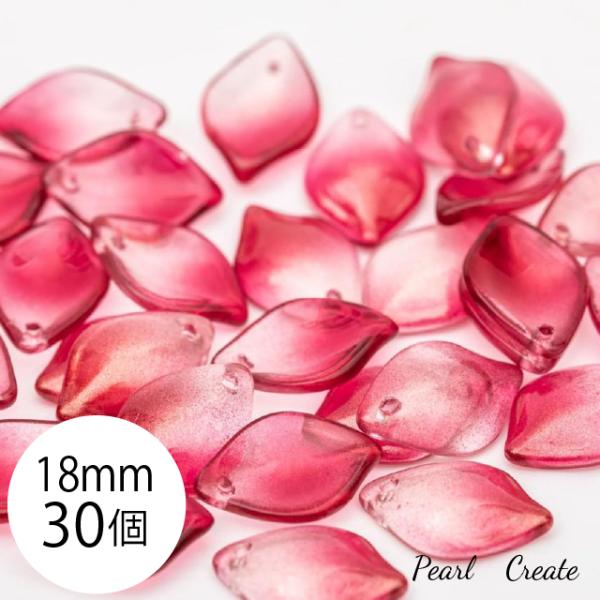 ビーズ 30枚 18mm 穴あり ガラスビーズ 美しい 花びら レッド ゴールド グラデーション クリスタル ピアスパーツ チップ 細工用ビーズ