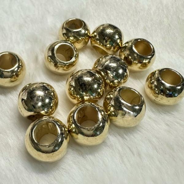 12個 14mm 大穴 プラスチック ビーズ KCゴールド