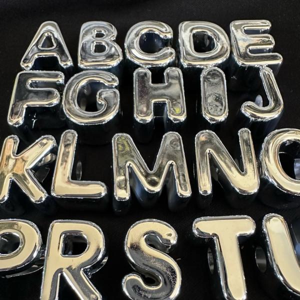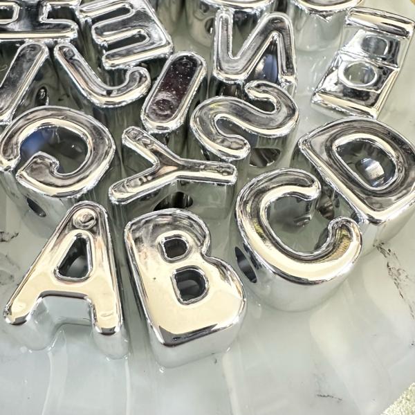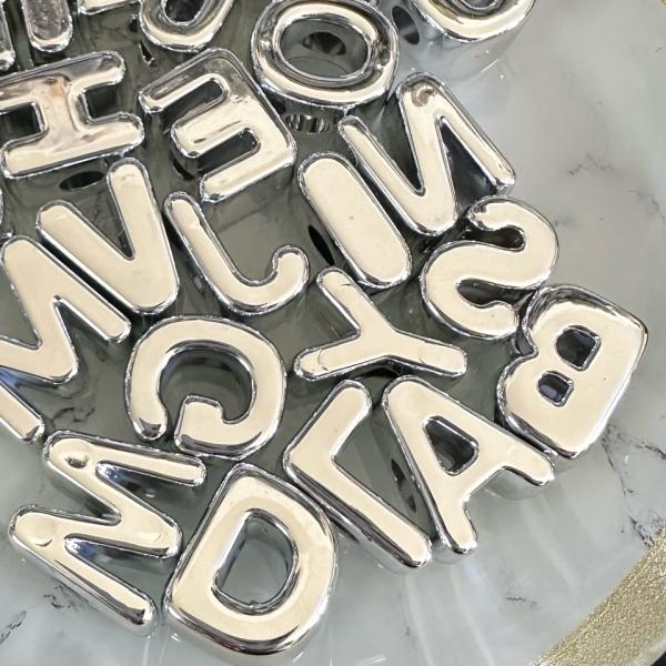 1個 アクリル 大穴 アルファベット ビーズ シルバー