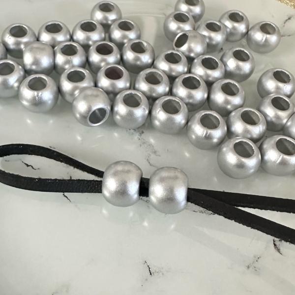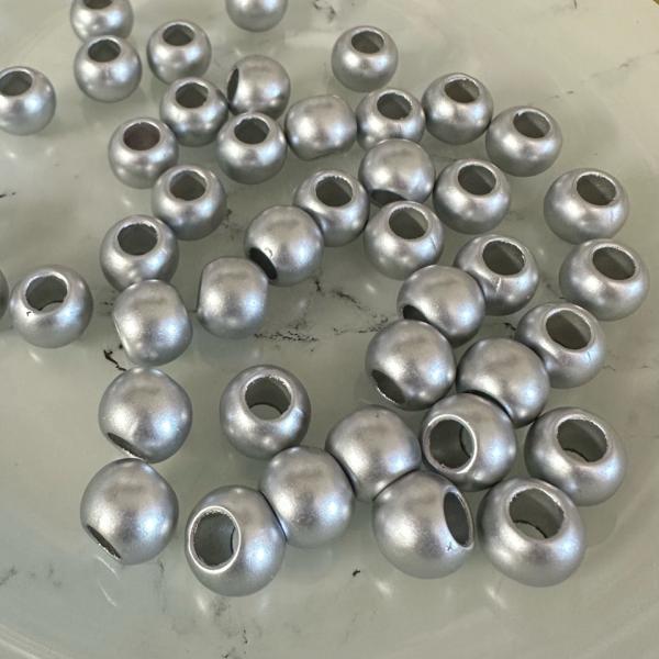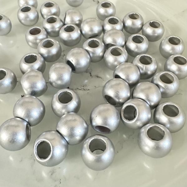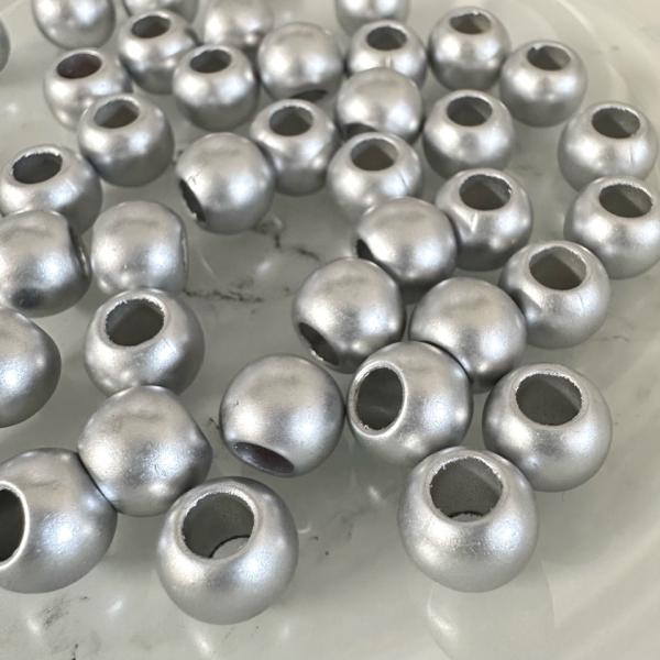 60個 10mm 大穴 アクリル ビーズ マットシルバー