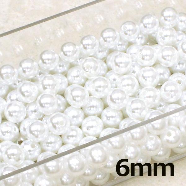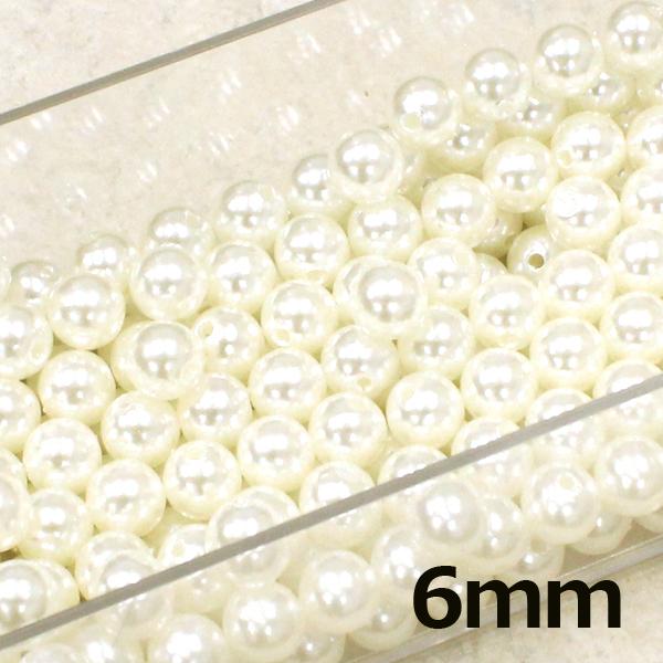 パール調ビーズ 6mm 100g(約1000個)入り 両穴 プラ製 ラウンド ビーズ