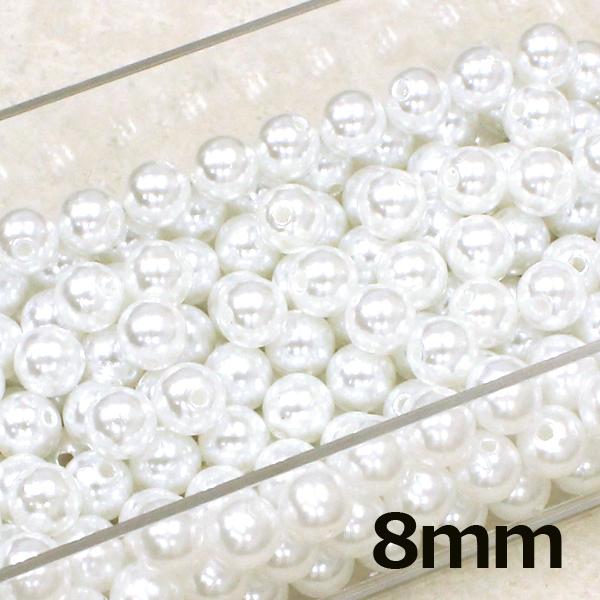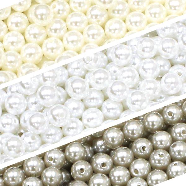 パール調ビーズ 8mm 100g(約400個)入り 両穴 プラ製 ラウンド ビーズ
