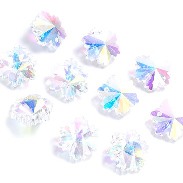ガラスビーズ クリスタルガラス 5個セット 雪の結晶 レインボー 一つ穴 サンキャッチャー ハンドメイド アクセサリー