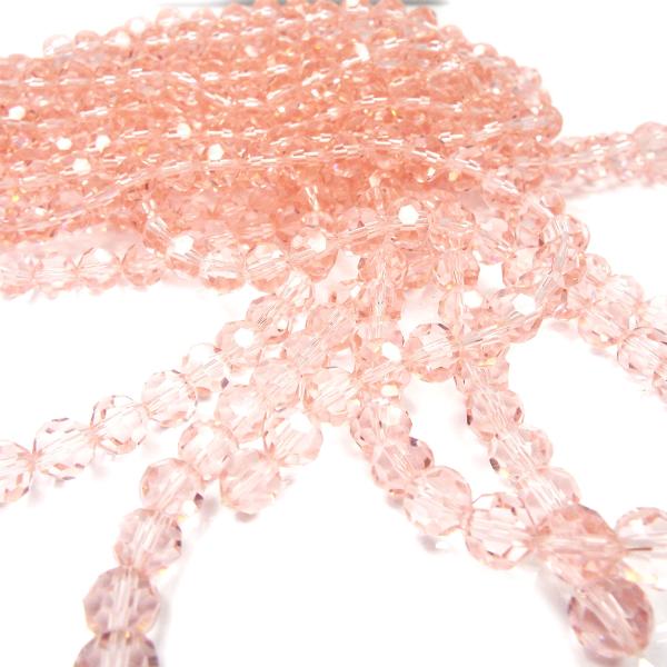 ガラスビーズ 約6mm 約96粒 クリスタルガラス ラウンドカット 連売り ピンク ハンドメイド アクセサリー