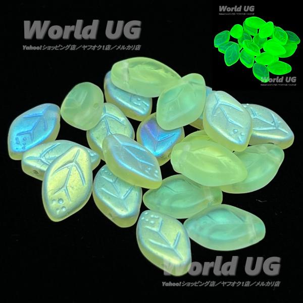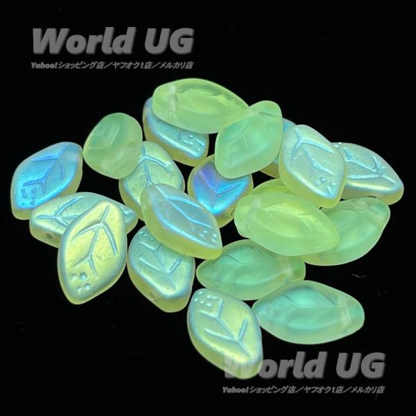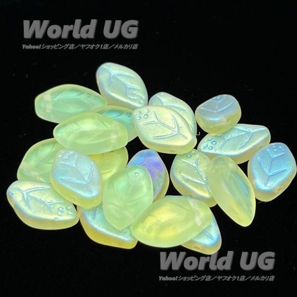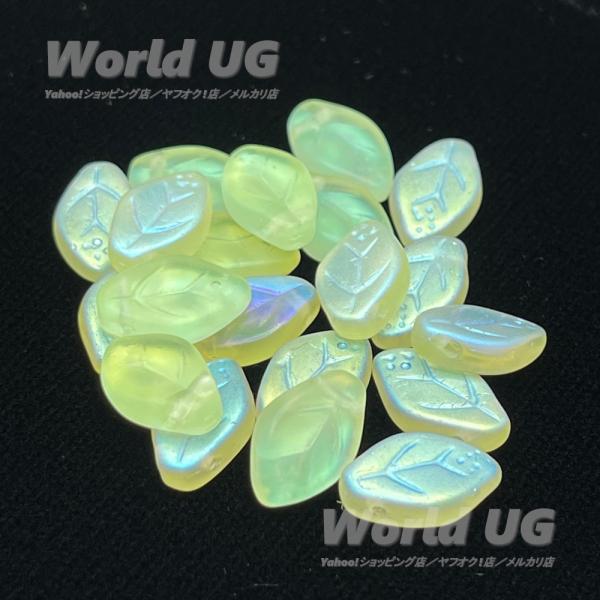 ウランガラス リーフ型ビーズ 黄色マットAB処理 7.6mm×12mm 20粒