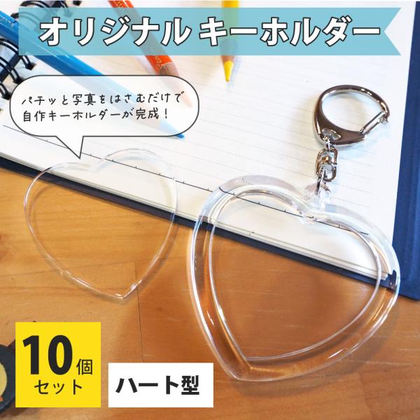 ハメパチ 【 □ キーホルダー 】【 □ ハート型】【 □ 10個セット】 【 OPP袋付 】 手作り プレゼント材料 押し花