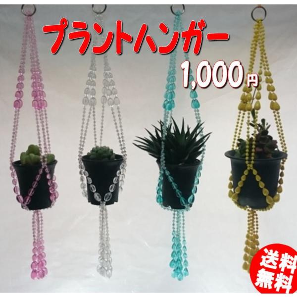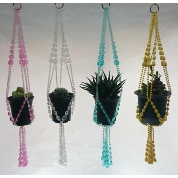 「プラントハンガー 選べる4色(ピンク・透明・ブルー・イエロー)全長48cm」ビーズ プランターハンガー