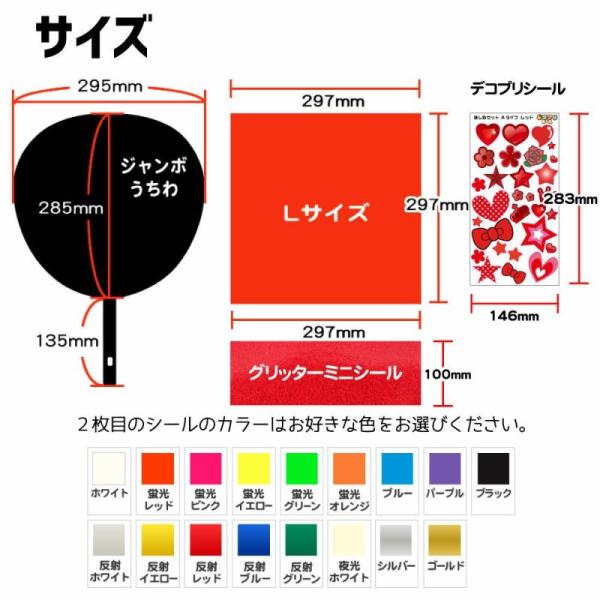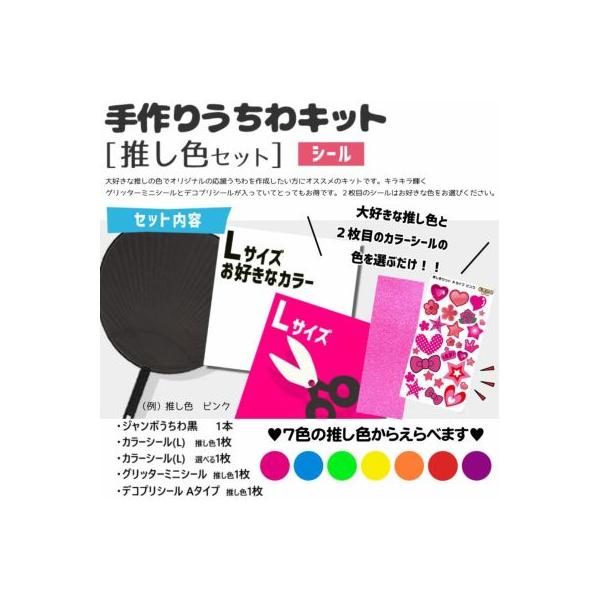 シール 手作りうちわキット(推し色セット)【うちわ1本】【カラーシールL 2枚】【グリッターミニシール】【推し色デコプリシールシールAタイプ1枚】【説明書】