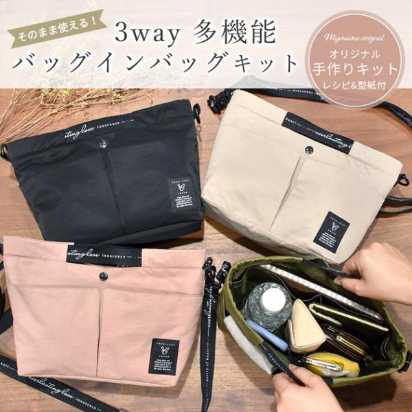 手作りキット バッグインバッグ 多機能 レシピ 型紙 動画付き ■ 手芸キット ショルダー ハンド バッグ 軽量 3way 整理整頓 ナイロン LV4 上級 ■ inbag