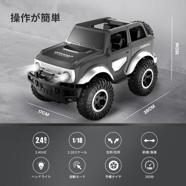 ラジコン ラジコンカー 子供 オフロード 自動車 DEERC おもちゃ RCカー 操作時間160分 デモモード LEDライト付き 2.4GHz リモコンカー クリスマス プレゼント