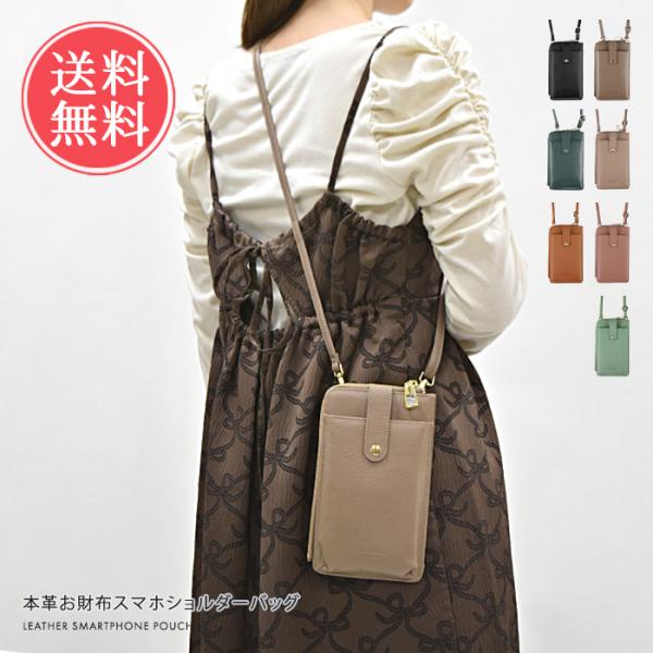 本革お財布スマホショルダーバッグ スマホショルダー スマホポーチ ショルダーバッグ ストラップ 財布 本革 牛革 レディース 2way ポーチ メール便送料無料