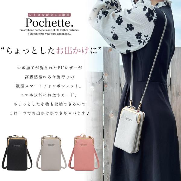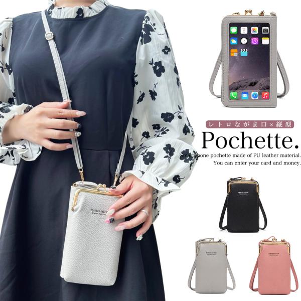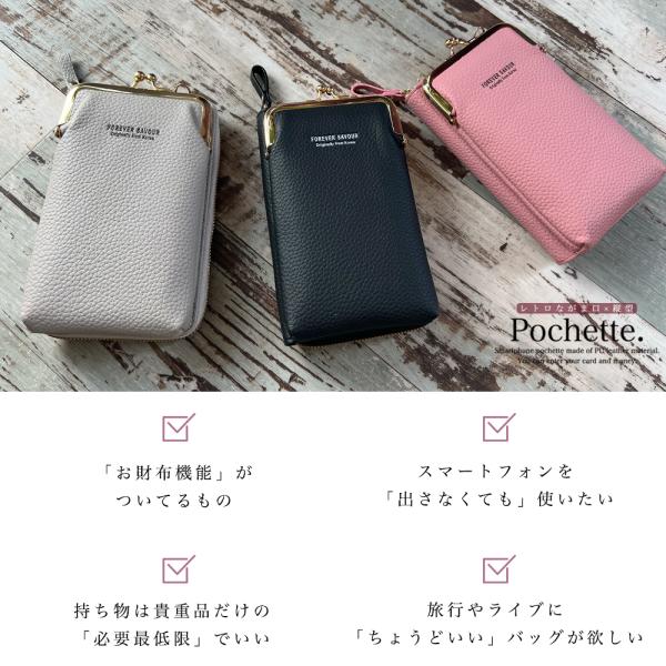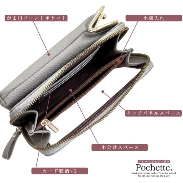 スマホポーチ レディース ポシェット スマホショルダー ウォレット 財布 肩掛け iPhone がま口 ショルダー アンドロイド