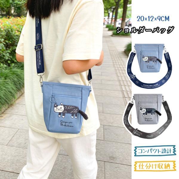 ショルダーバッグ バケツ型 バケツバッグ 猫柄 肩掛け 斜めがけ 大容量 独立仕切り ジッパーポケット ウェビングベルト 長さ調整可能 小物収納 スマホ 財布 傘