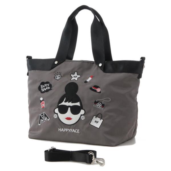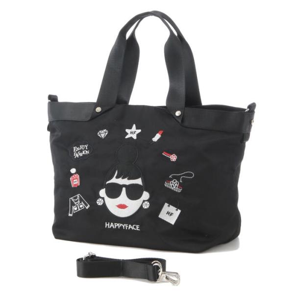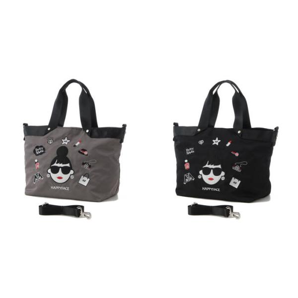 ハッピーフェイス レディエマ 新刺繍 多機能 2WAY トートバッグ 大 レディ・エマ(トートバッグ ハンドバッグ ショルダーバッグ ナイロン 軽量)