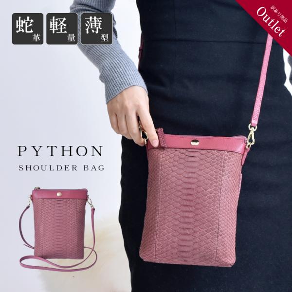 ショルダーバッグ パイソン レディース 訳あり 本革 蛇革 アウトレット 縦型 ポシェット 軽量 ヘビ革 レザー 薄型 コンパクト 小さめ 斜めかけ ギフト 送料無料