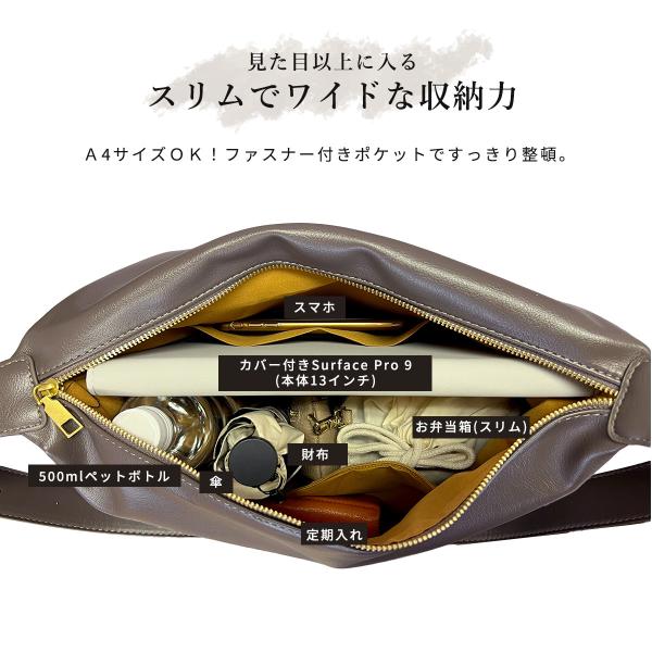 ショルダーバッグ レディース 大きめ a4 軽い 斜めがけ 革 黒 ファスナー 軽量 撥水 レザー 通勤 2way 斜め掛け 40代 大容量 トートバッグ 斜め掛けバッグ 軽量